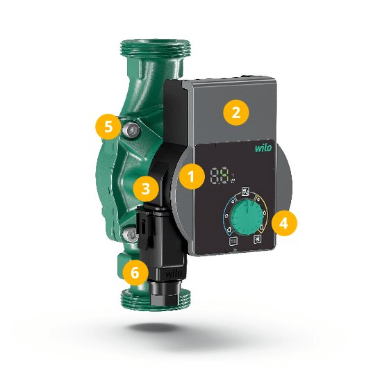 带螺钉连接、堵转电流保护 EC 电机和集成电子功率控制装置的屏蔽循环泵。